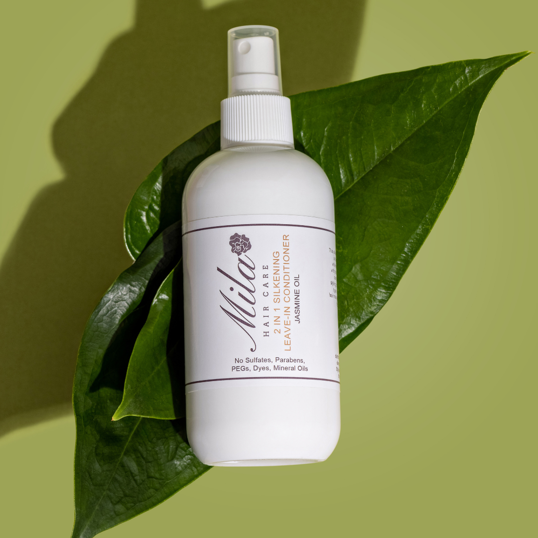 This 2-in-1 Silkening Leave-in Conditioner with Jasmine Oil is one of our best sellers. It provides the nourishing benefits of deep conditioning, while protecting hair from UV heat damage and adding volume and bouncy curls. It's enriched with hydrating ingredients and Jasmine oil, leaving hair soft and manageable.